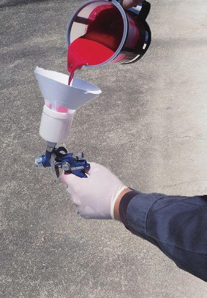 スプレーガンのカップに塗料を移す際は、ゴミなどが混入しないようにストレーナーを使ってください。