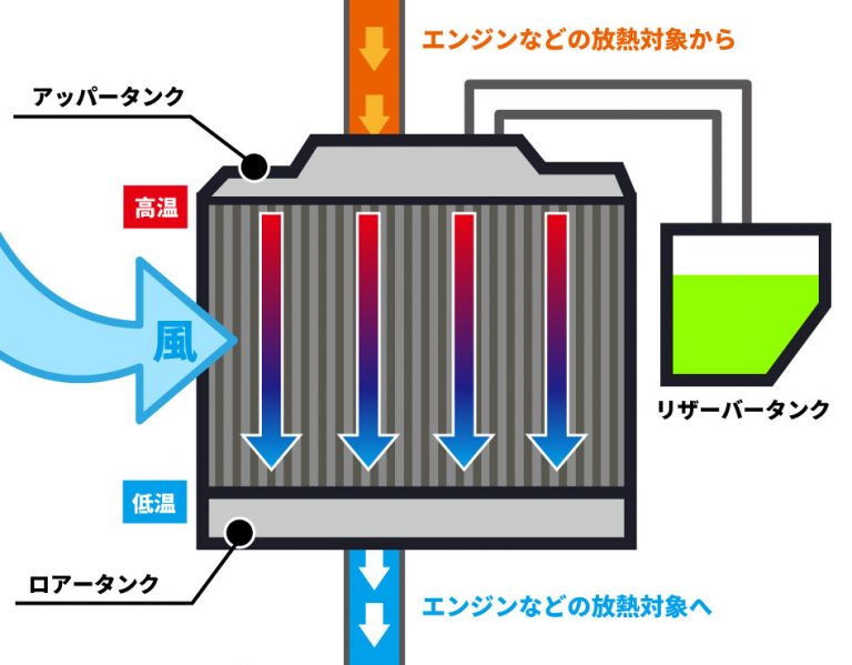 車のエンジンを冷やして戻ってきた冷却液は、高温状態になっていますので、冷やさなくてはいけません。
