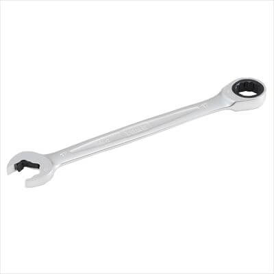 ラチェットレンチとは、ラチェット機構を組み合わせたレンチのことです。ラチェット機構とは、一方向にだけ動くように回転を制限する仕組みを指します。反対方向にも動かすことはできるものの、歯車が噛み合わず空回りする構造になっています。このラチェット機構により、レンチをボルトやナットにはめたまま締められるのでスムーズな作業が可能です。具体的には以下のような商品があります。