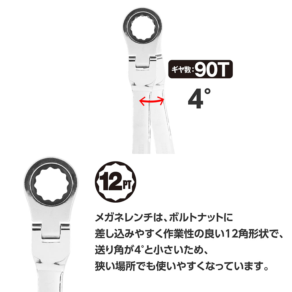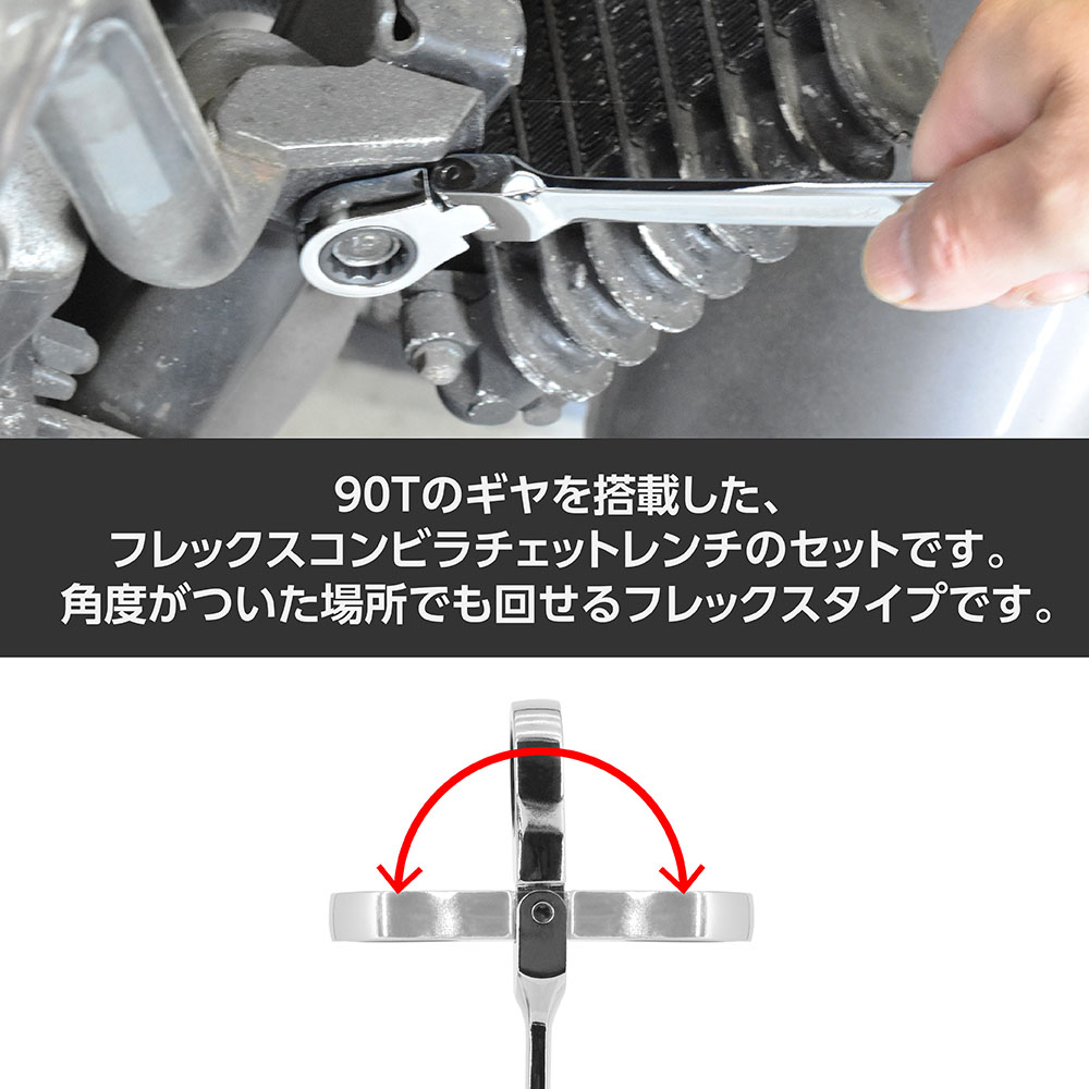 90Tのギヤを搭載した、フレックスコンビラチェットレンチのセットです。