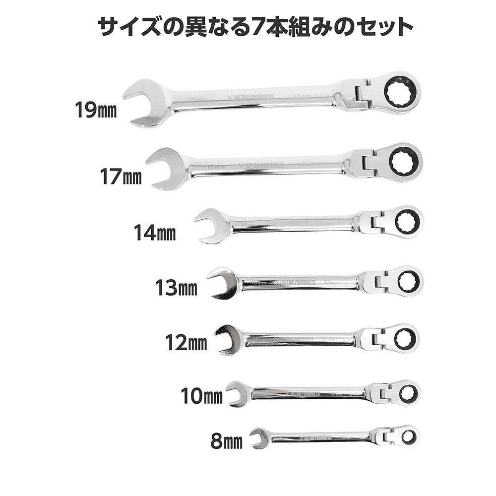 | [セット内容] | フレックスコンビラチェットレンチ 8、10、12、13、14、17、19mm、レンチホルダー |