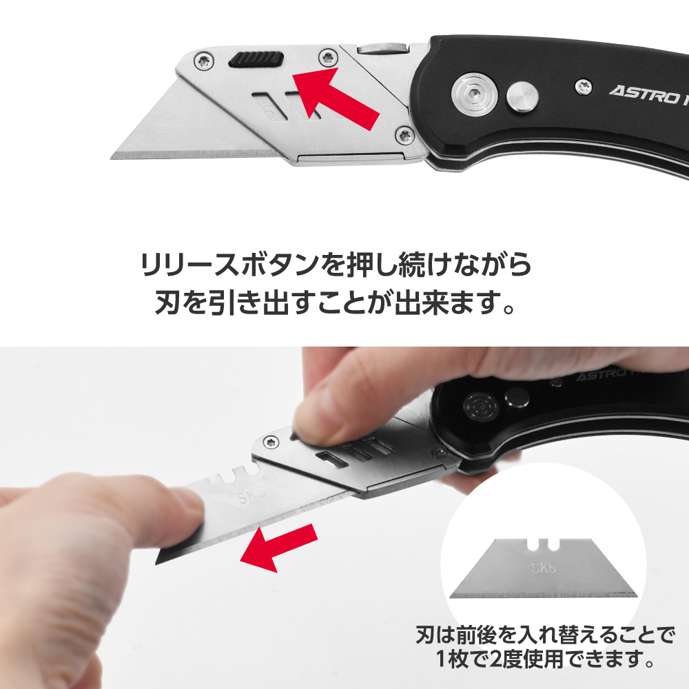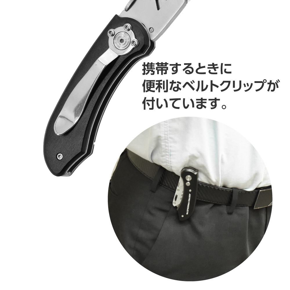 | 材質 | アルミニウム(本体)、ステンレス(クリップ)、炭素鋼(刃) |