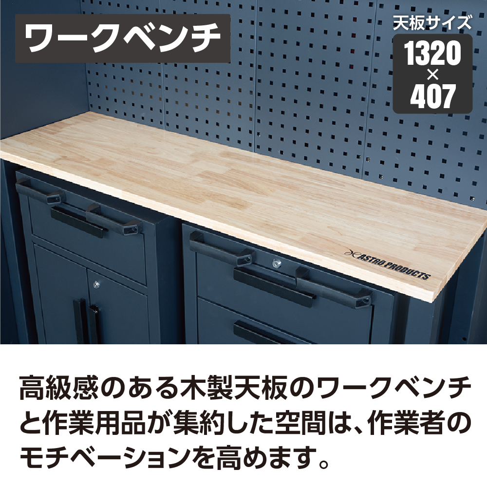 | ワークベンチ、ロッカー(大)(小)×2、棚×4段、キャビネット(4段)(ロッカー付)、バックパネル | |