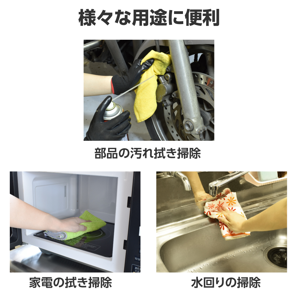 ※乾拭きや対象面に砂やホコリがある状態で使用すると、傷がつく原因となります。