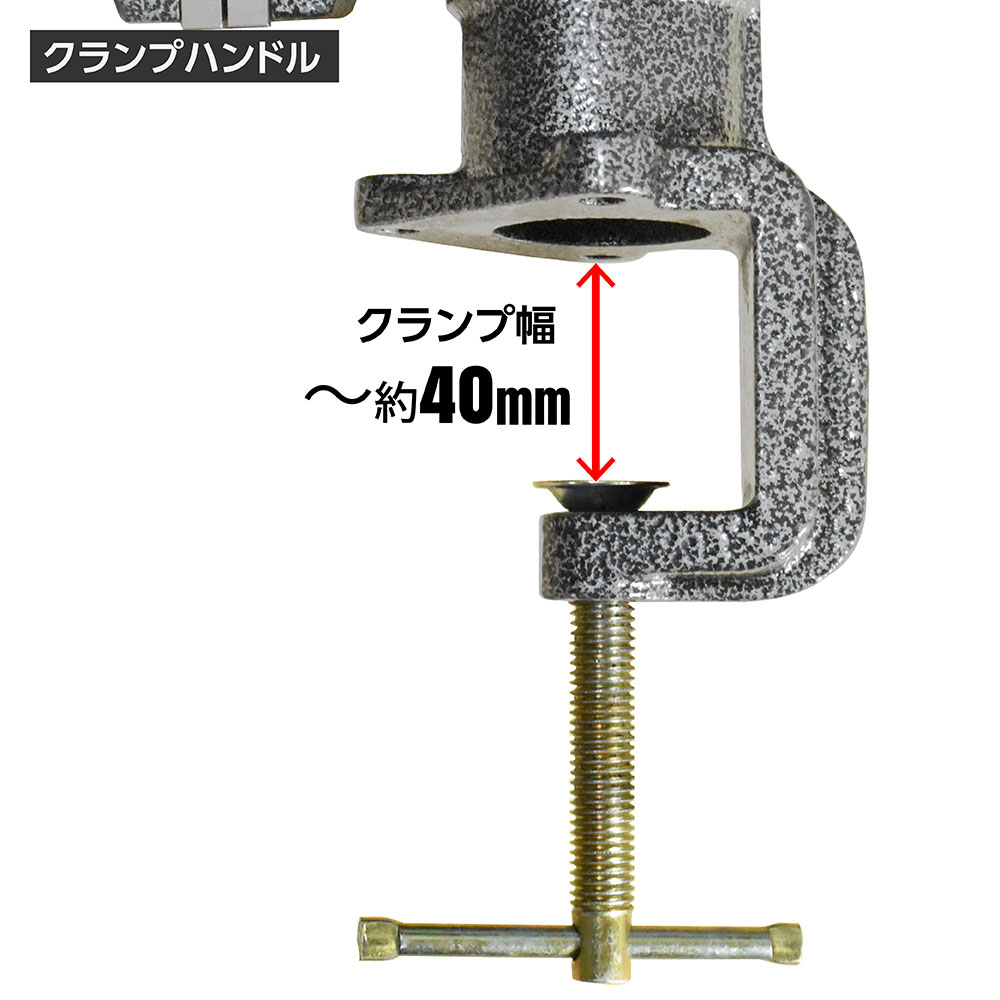 クランプ式なので、軽作業であれば作業台の天板を挟んで固定できます。