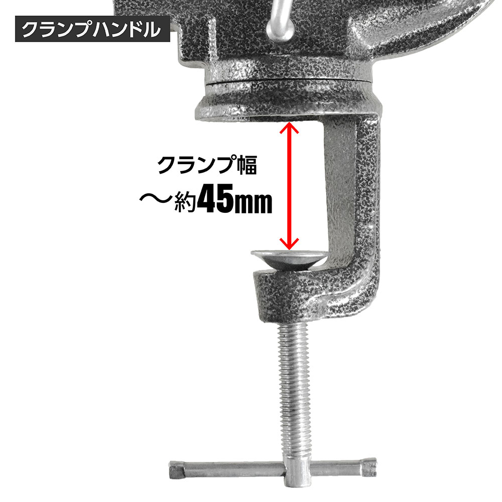 クランプ式なので、作業台の天板に挟んで固定できます。