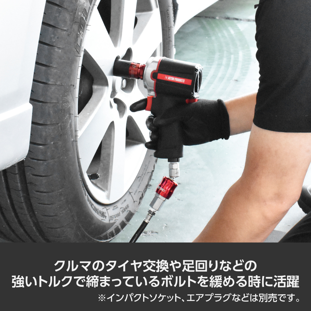 ※コンプレッサーの容量、圧力、ホースの径や長さによって、最大トルクが発揮できない場合があります。