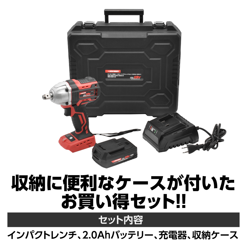 インパクトレンチ、バッテリー、充電器、収納ケース | |