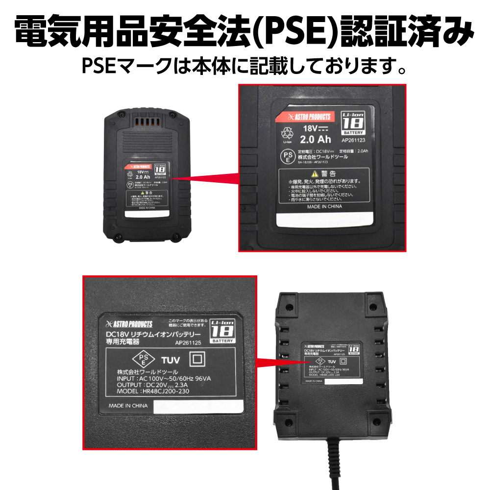PSEマーク取得済 (届出事業者名:株式会社ワールドツール) | |