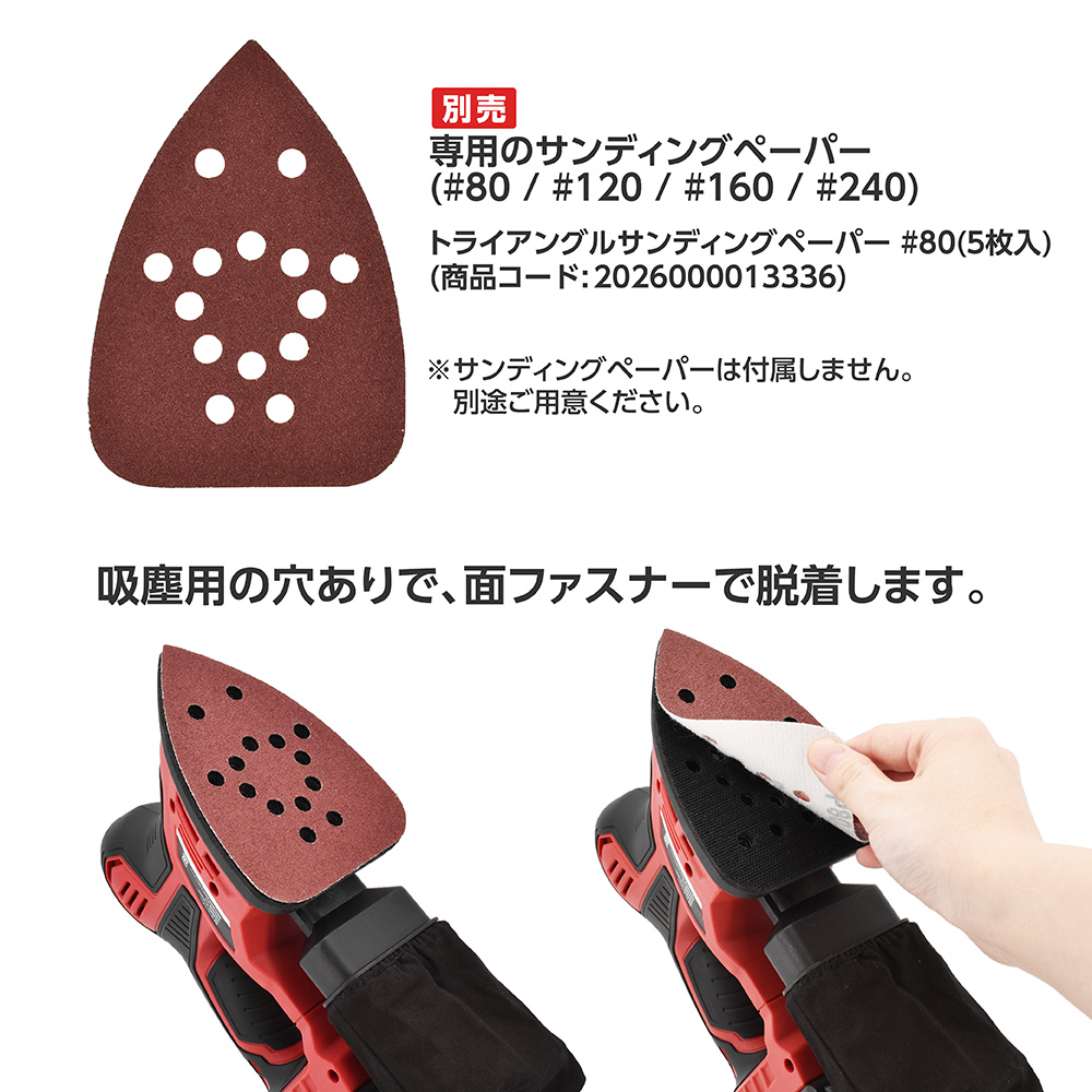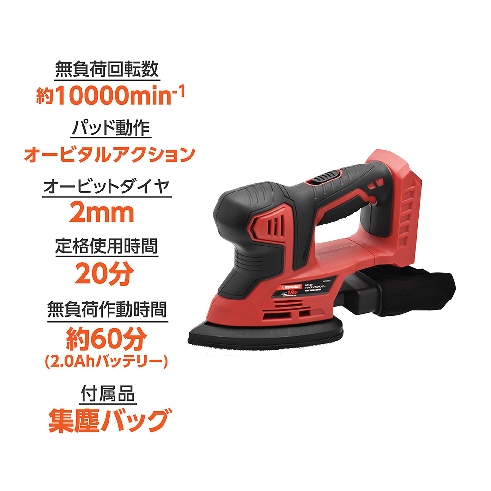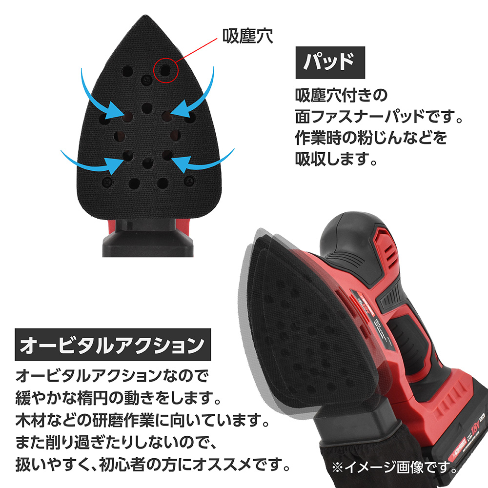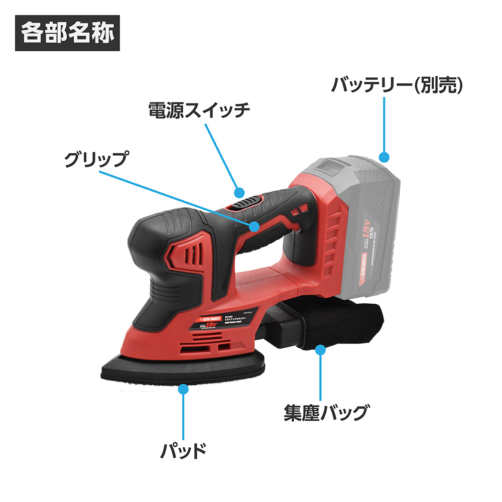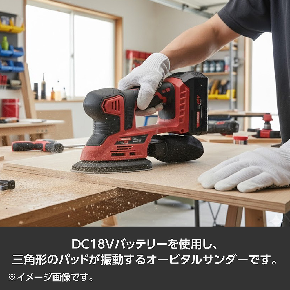 DC18Vバッテリーを使用し、三角形のパッドが振動するオービタルサンダーです。