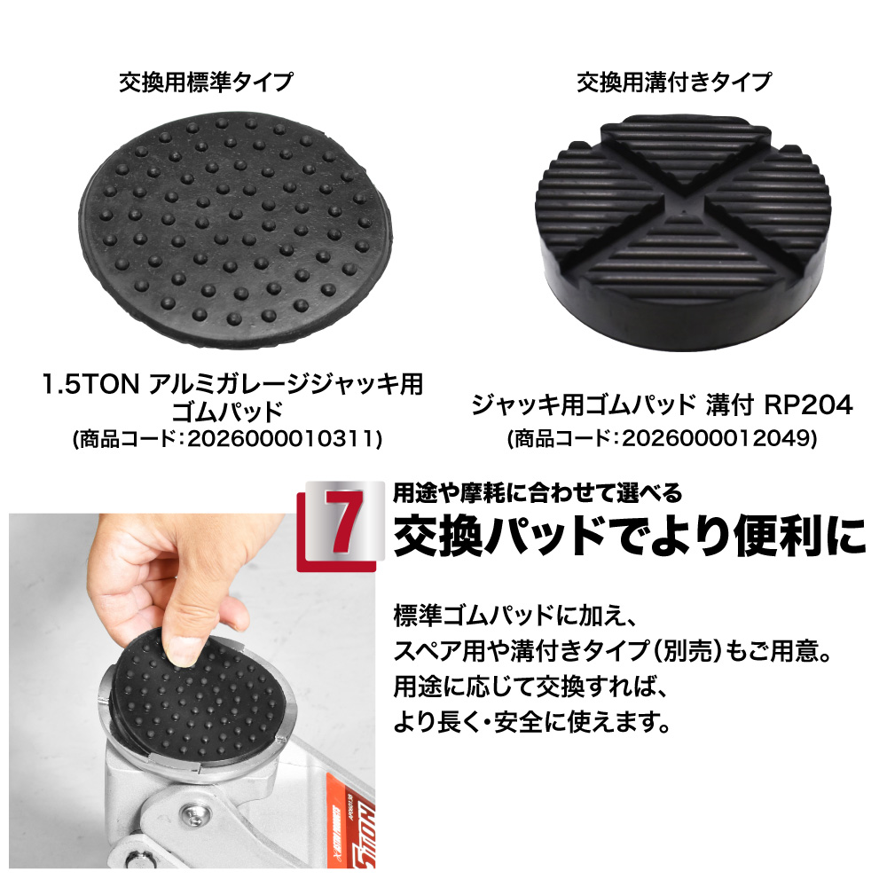 軽くて作りも良くカッコいい!長年使用していた鉄製のジャッキが壊れ探していたところ、このアルミ製ジャッキを購入させて頂きました。鉄製と比べかなり軽く作りも良く見た目もカッコいいので気に入ってます! ハンドル 1ストロークでの上げ量の関係(ストローク量が大きくなった)なのか?ジャッキアップするのに以前使っていたジャッキより力が必要でした。 慣れれば大丈夫そうですが星4で!