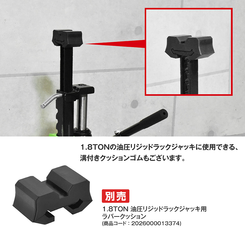 ジャッキポイントはもちろん、ラダーフレーム、ホーシングなどでのジャッキアップに便利です。
