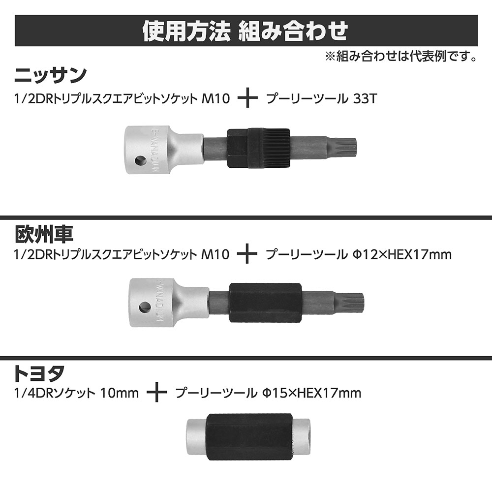 | プーリーツール | Φ12×HEX17mm/Φ15×HEX17mm |