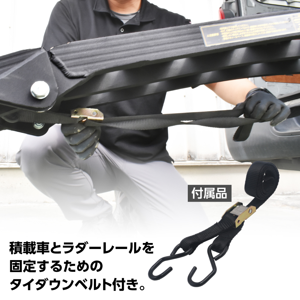 二輪車などを積載車へ載せたり、降ろしたりする際に使用する、アルミ製の折畳式ラダーです。
