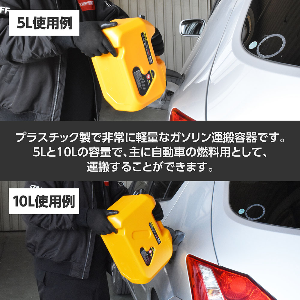 5L / 10Lの容量で、主に自動車の燃料用として、運搬することができます。