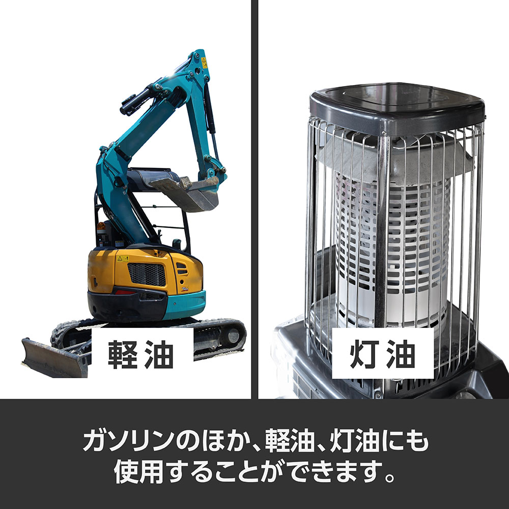 ガソリンのほか、軽油、灯油にも使用することができます。