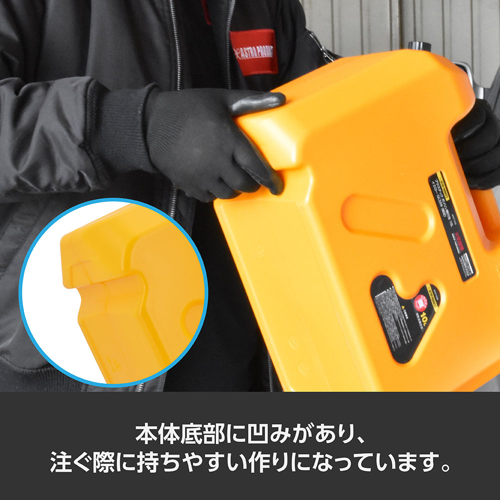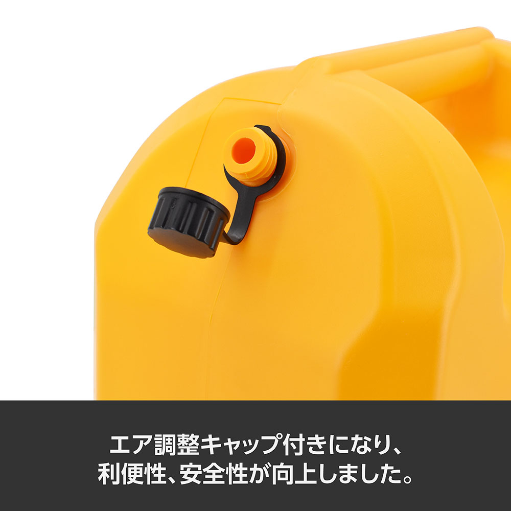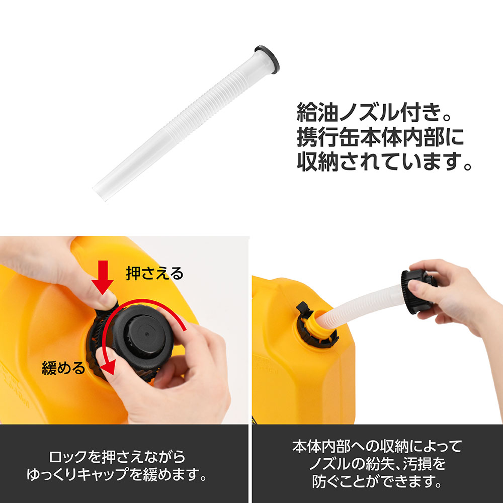 ※製品の特性上、金属製容器に比べて静電気を溜め込みやすくなっていますので、使用前に地面に置くなどし、静電気を逃がしてから給油してください。