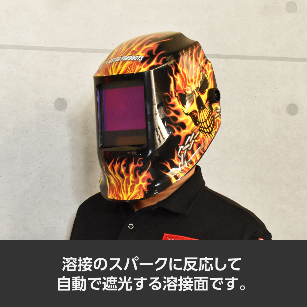 溶接のスパークに反応して自動で遮光する溶接面です。