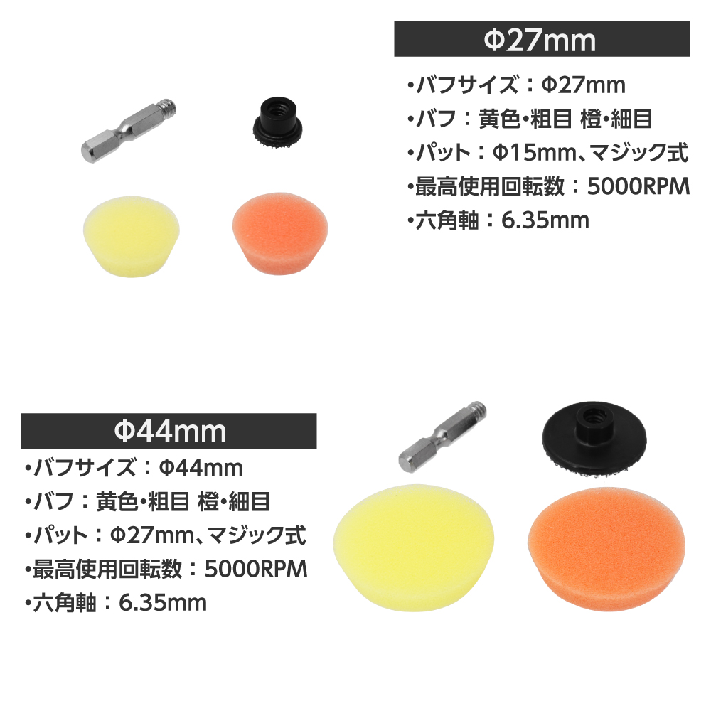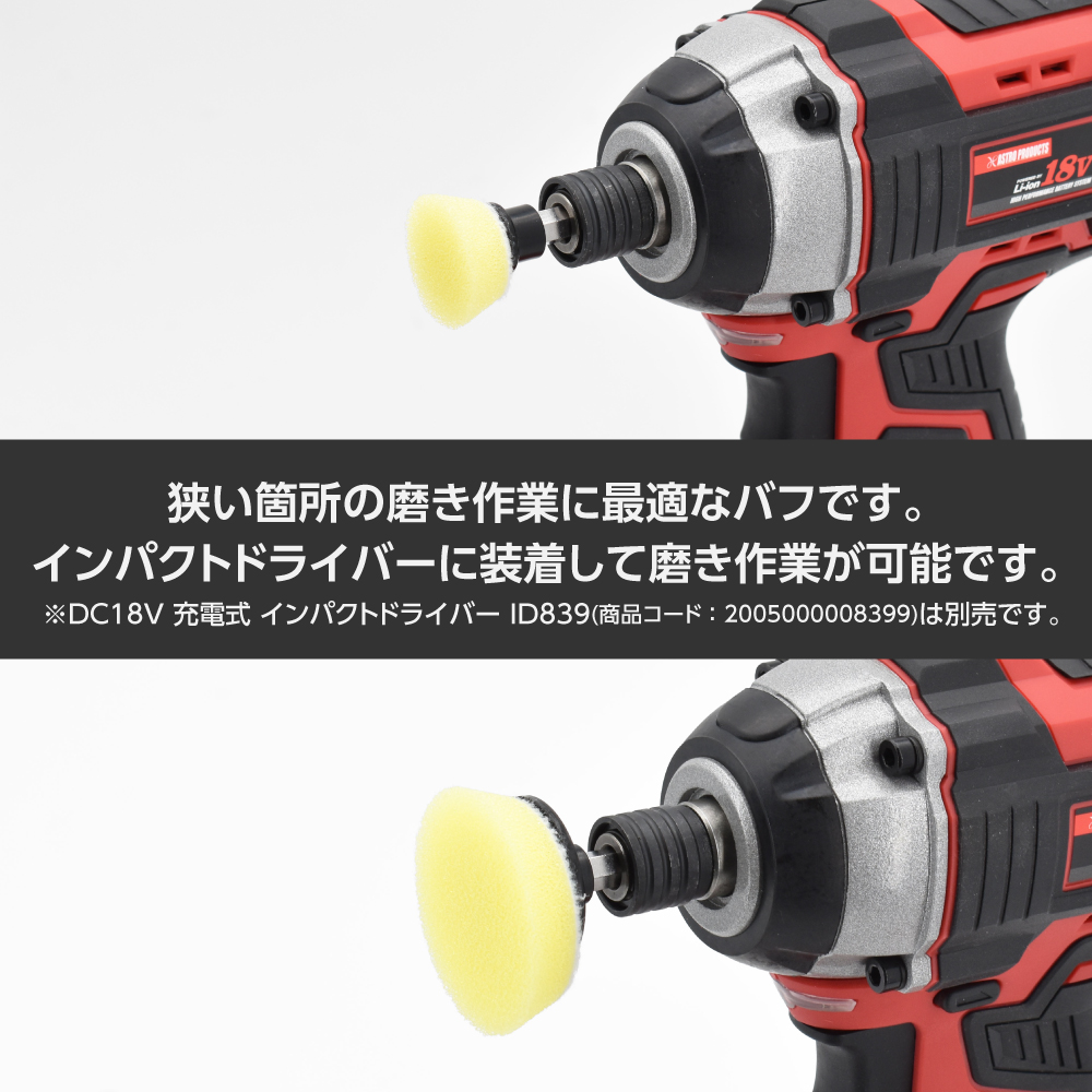 小さいバフにより、パーツや狭い箇所などの磨きづらい箇所もきれいに磨けます。