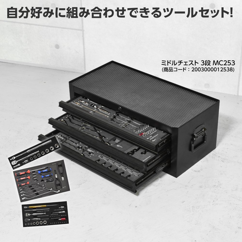 既にお使いのツールボックスやキャビネットの引出しにも使用できます。