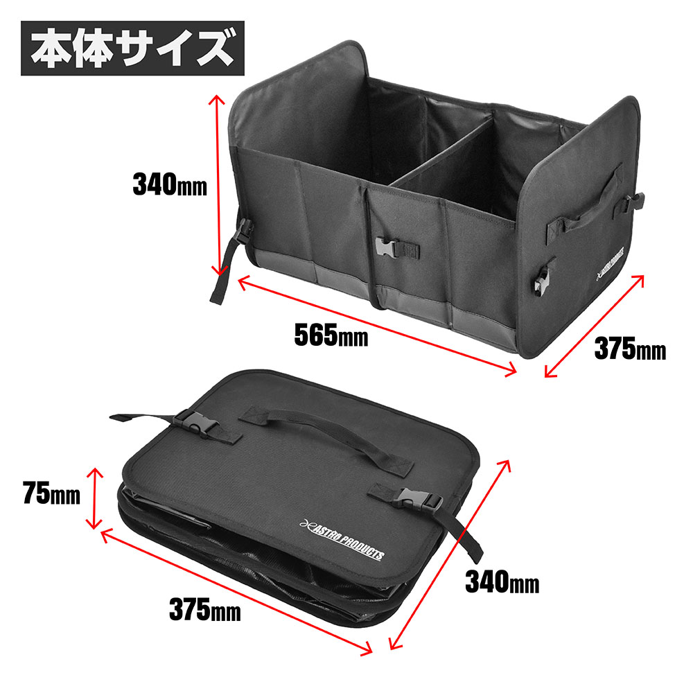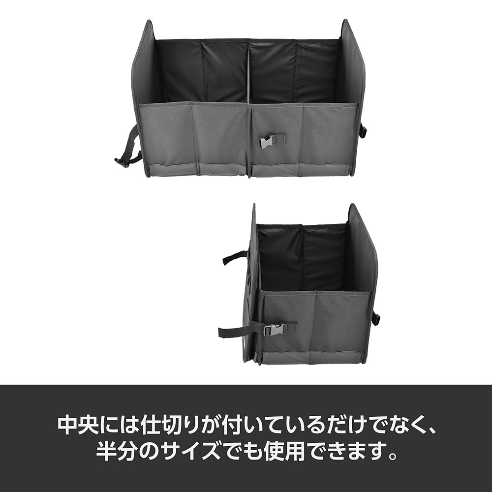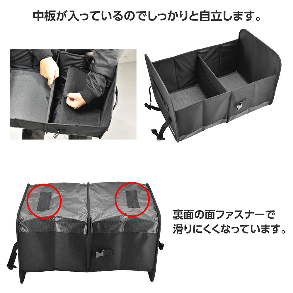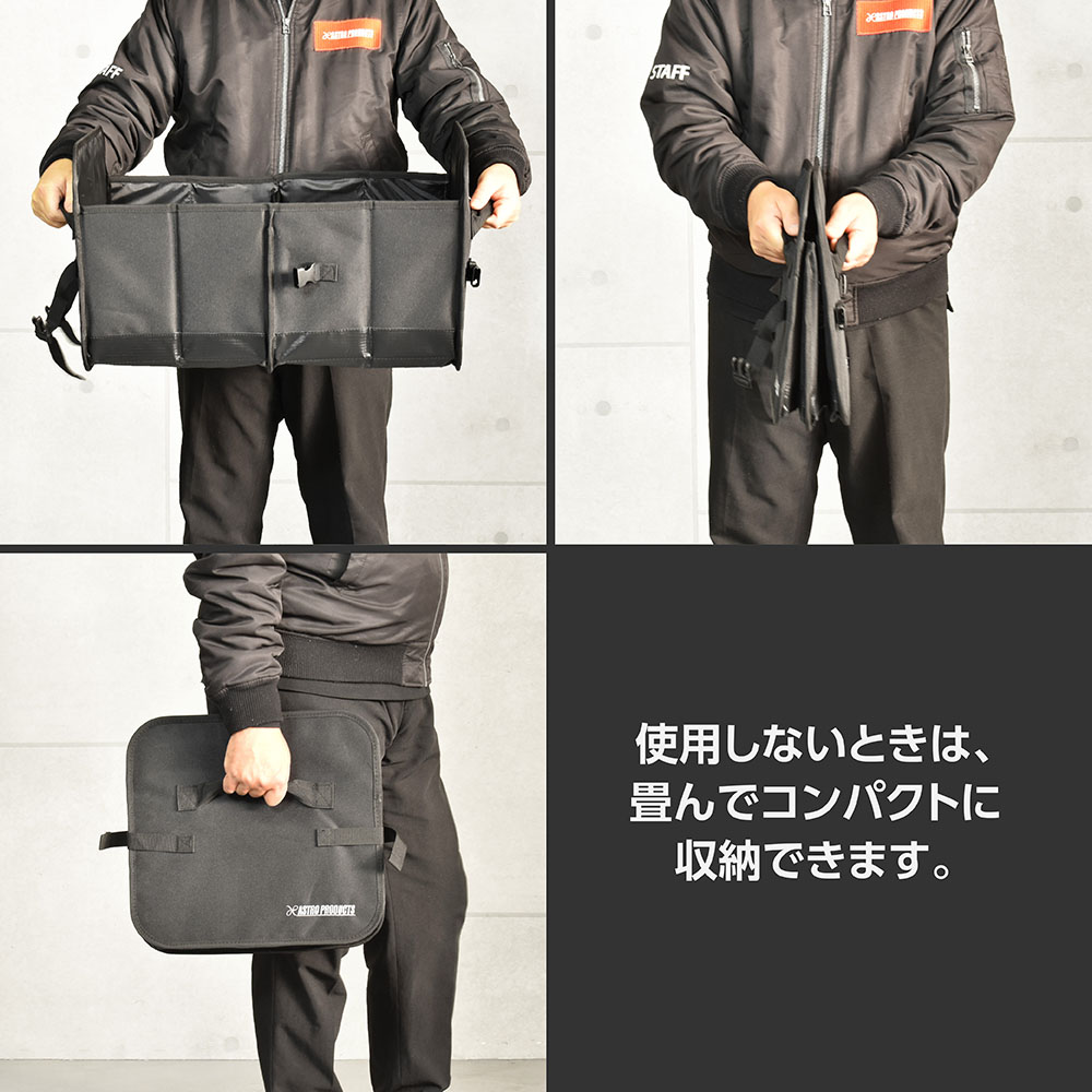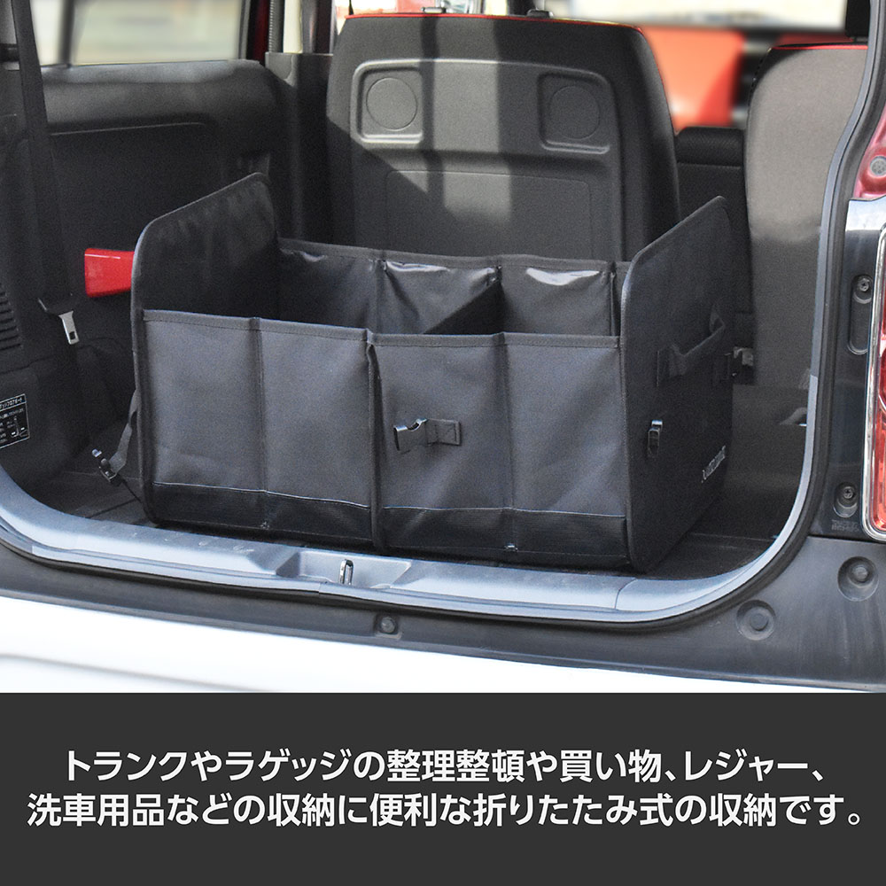トランクやラゲッジの整理整頓に便利な折りたたみ式の収納です。