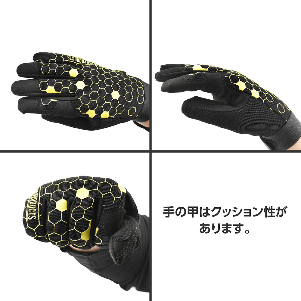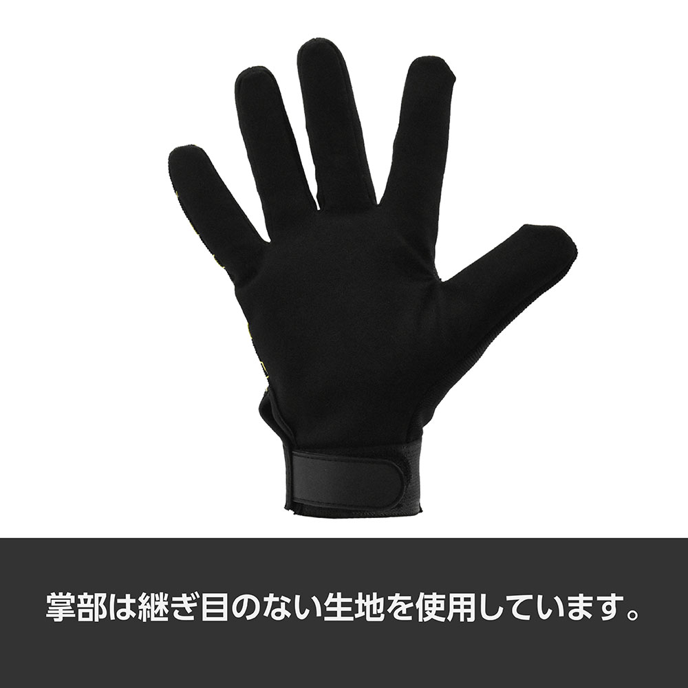 手の甲はクッション性があり、掌部は継ぎ目のない生地を使用しています。