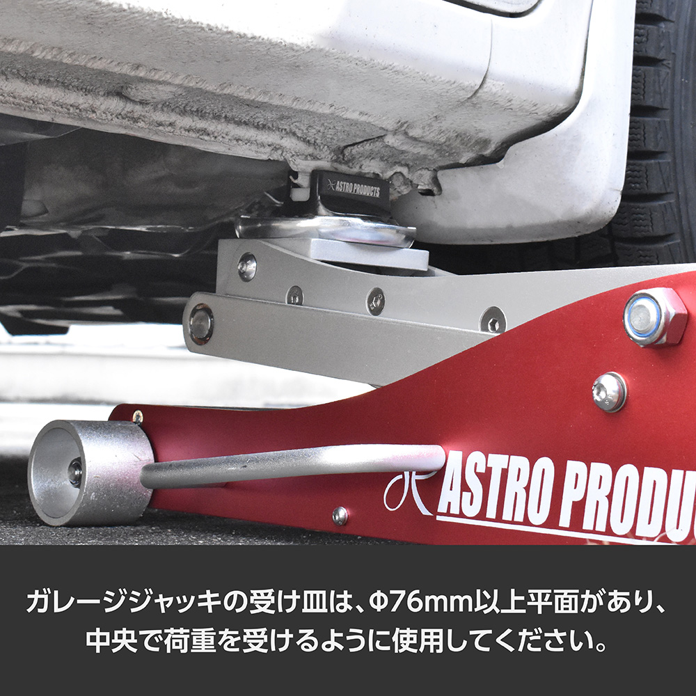 ※ジャッキの受け皿は、Φ76mm以上平面があり、中央で荷重を受けるように使用してください。