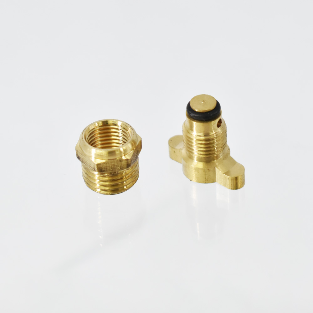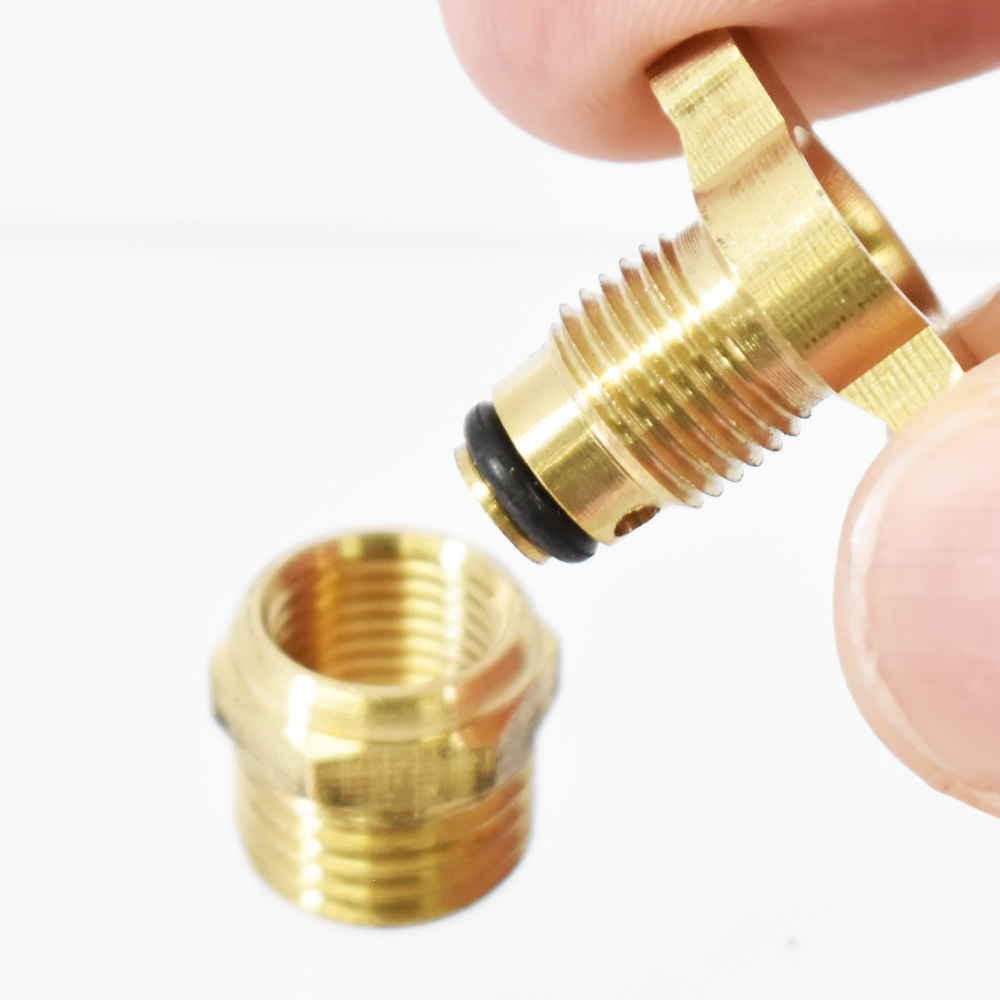 エアタンク下部のドレンプラグです。タンクに取り付けるメス側と、プラグ形状のオス側のセットです。
