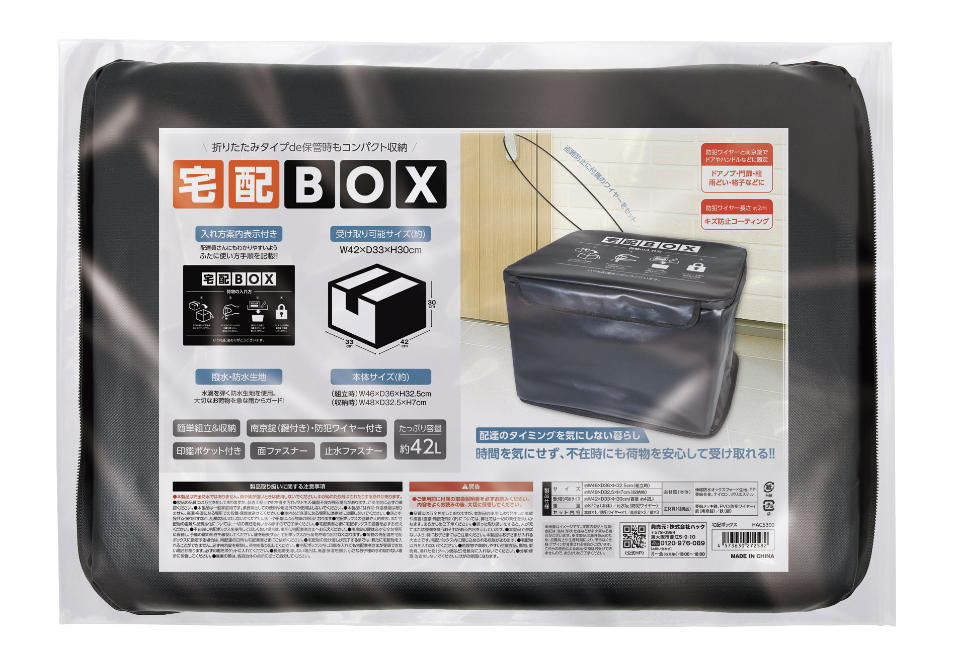 収納時もコンパクト!折りたたみタイプの宅配ボックスです。