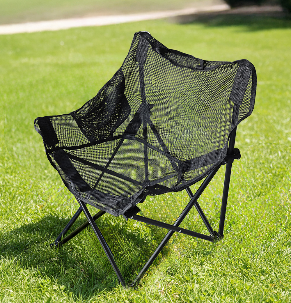 組み立て不要、広げて置くだけですぐに使える折りたたみチェア。