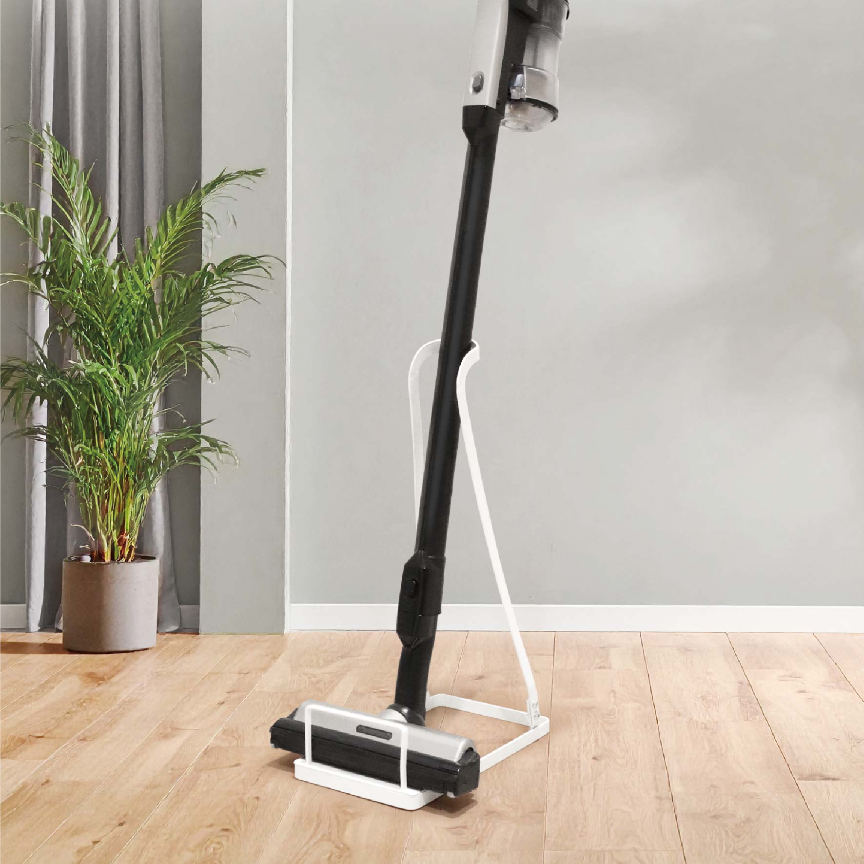 壁に穴を開けずに立てて収納できるスティッククリーナースタンドです。