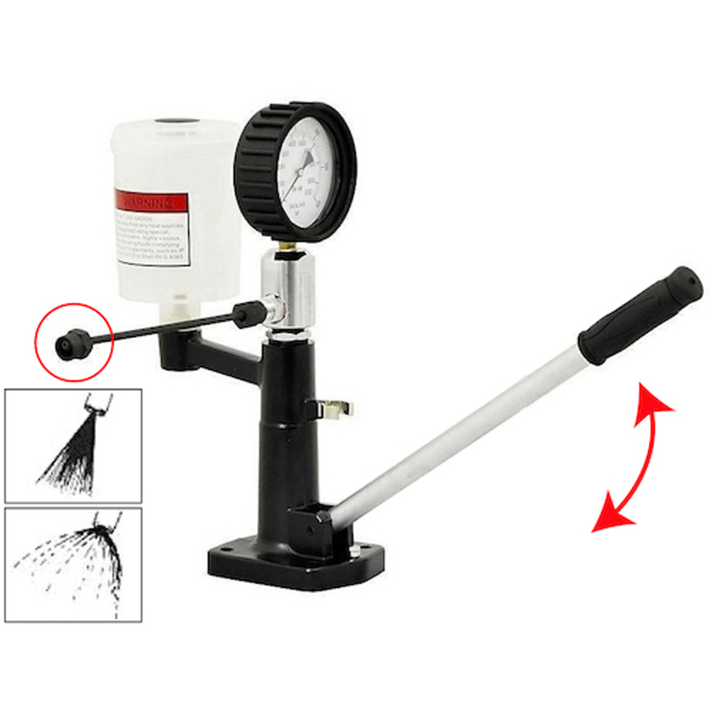 いすゞ、ディーゼル、トヨタ、ダイハツ、三菱、日野、マツダ、クボタ、ヤンマー、コマツ 計量法対応、農機、船舶にも使用可 ディーゼルエンジン用噴射ノズルの噴射開弁圧の測定、油密テスト、噴射角度、霧化状態の目視点検ができます。