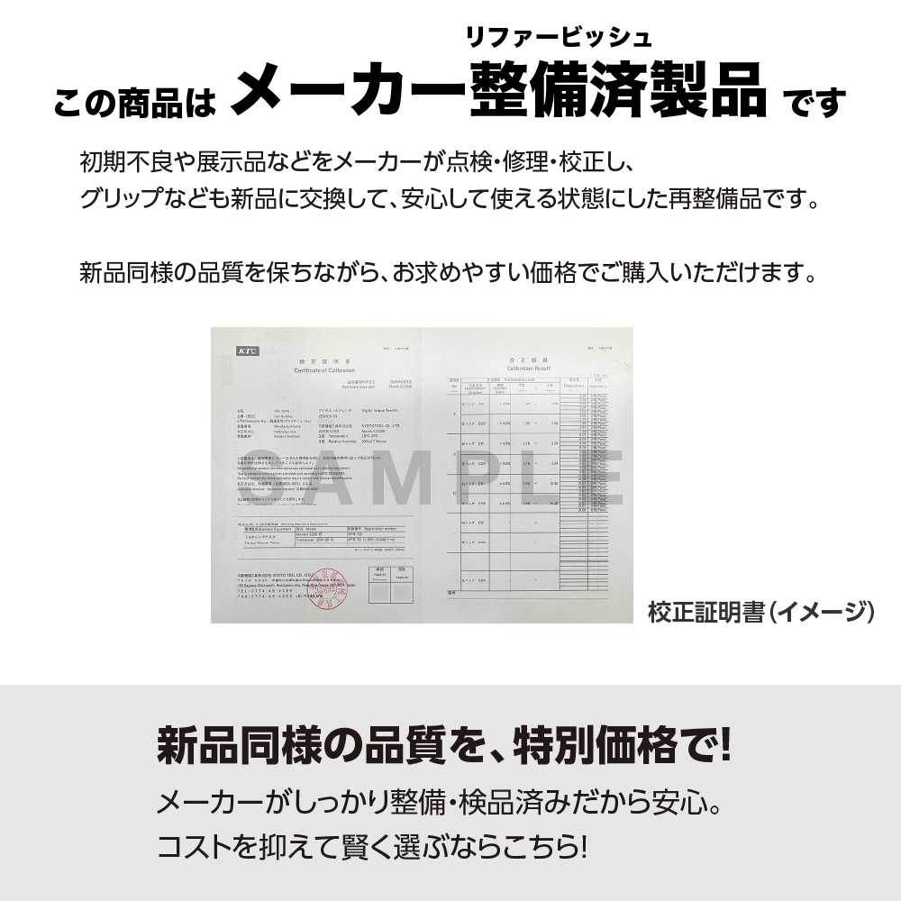 初期不良や展示品などをメーカーが点検・修理・校正し、グリップなども新品に交換して、安心して使える状態にした再整備品です。