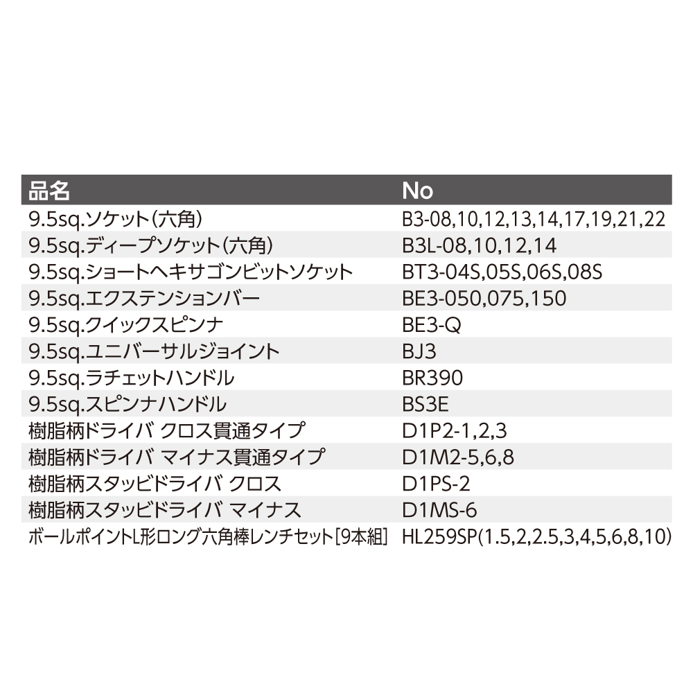 | 9.5sq.ソケット(六角) | B3-08、10、12、13、14、17、19、21、22 |